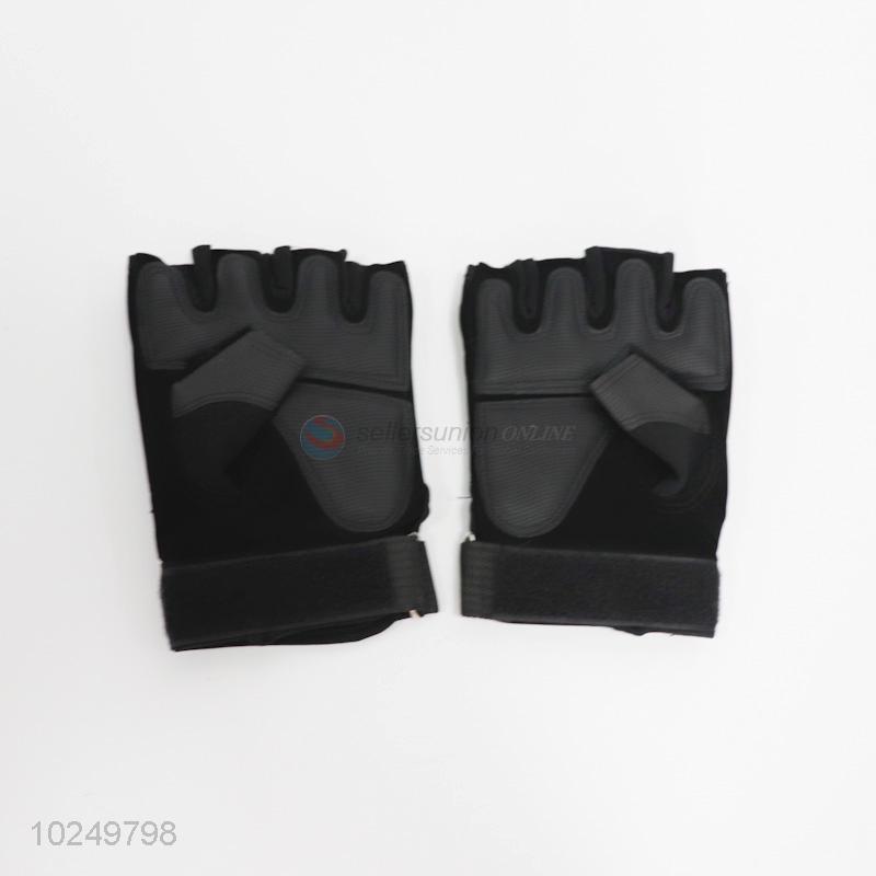 Cheap and good quality black half-finger polyester gloves