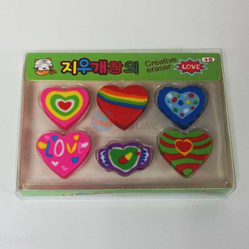 Heart Design Lovely Eraser 6pcs for Kids