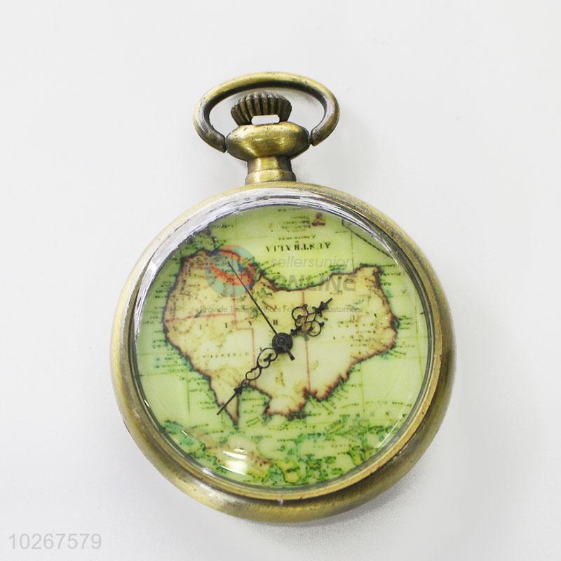 Fashion Map Pattern Vintage Bronze Metal Pocket Watches