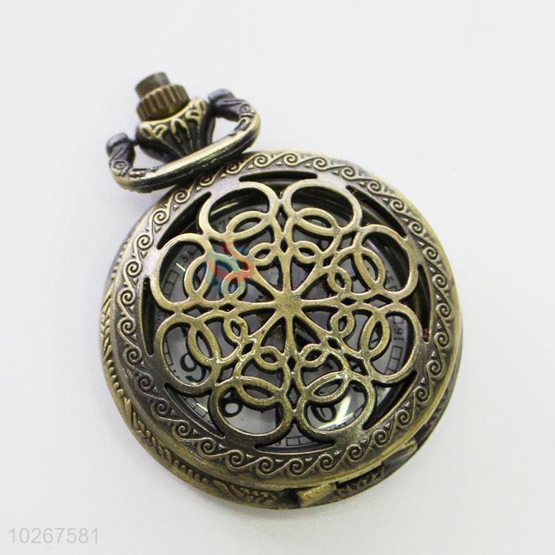 Fashion Hollow Flower Vintage Bronze Metal Pocket Watches