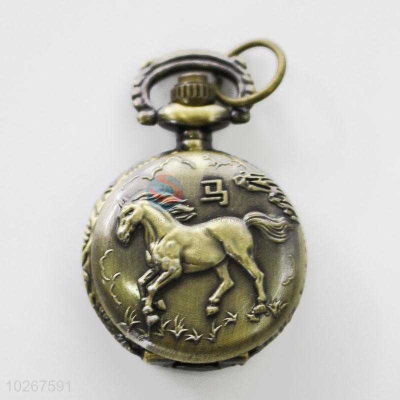 New Zodiac Design Horse Pattern Bronze Metal Pocket Watches