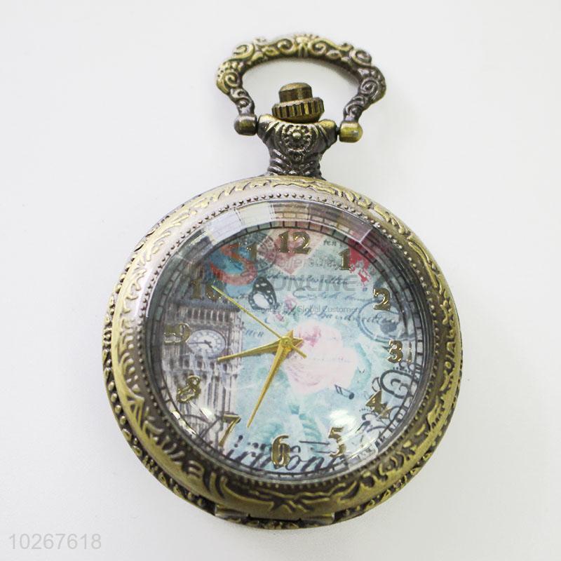Vintage Building Pattern Vintage Bronze Metal Pocket Watches