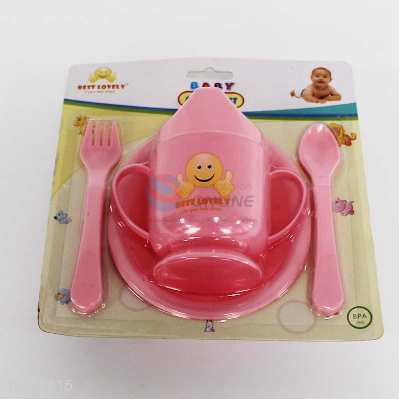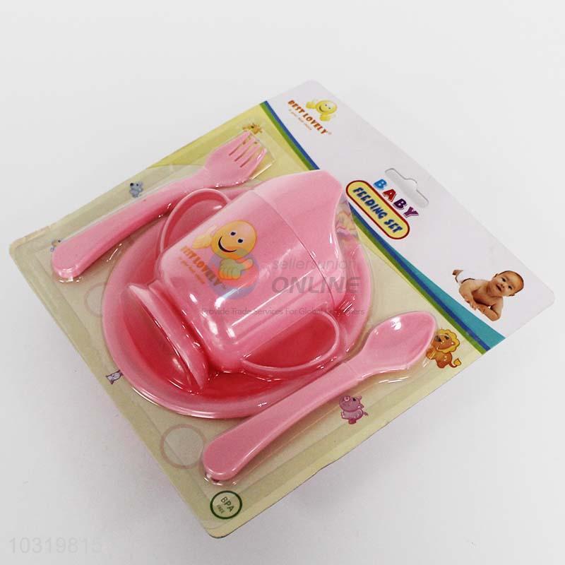 4PC/Set Pink Color Nontoxic Baby Fork,Spoon,Plate and Bottle