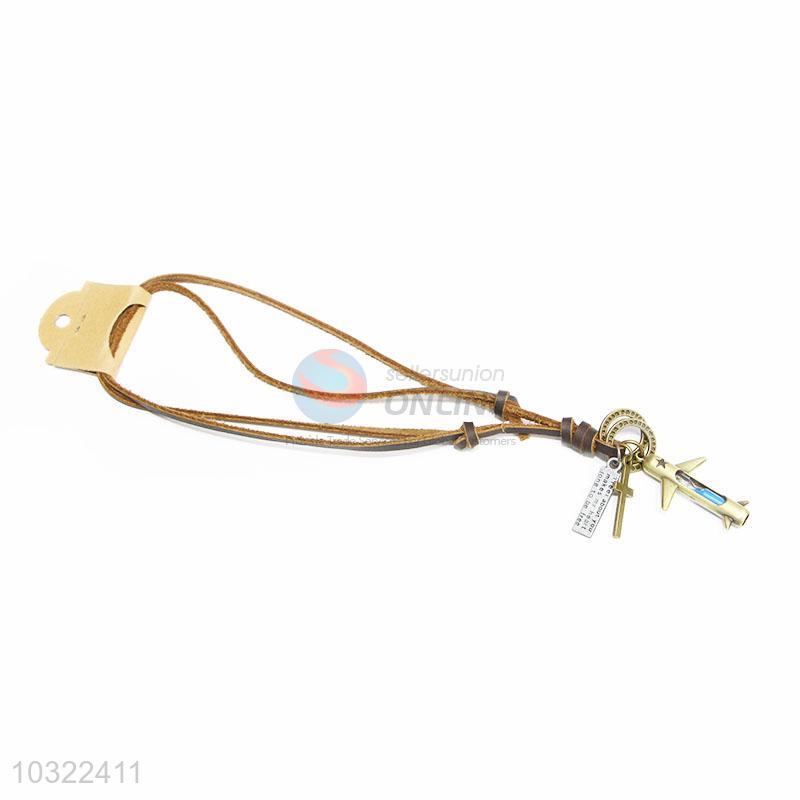 Promotional Gift Retro Cowhide Necklace with Airplane Pendant