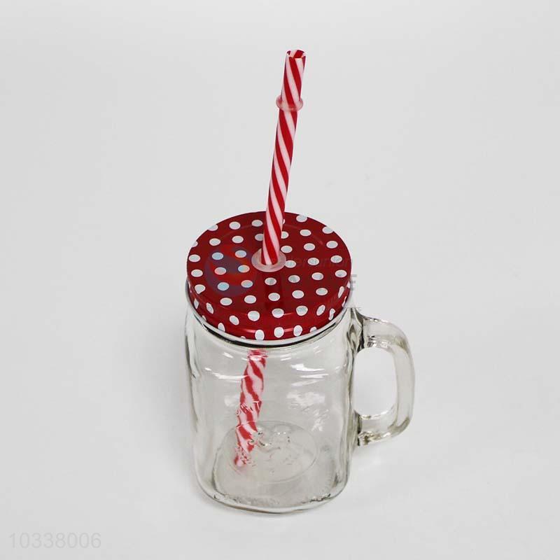 Bottom price good quality glass juice cup with a straw