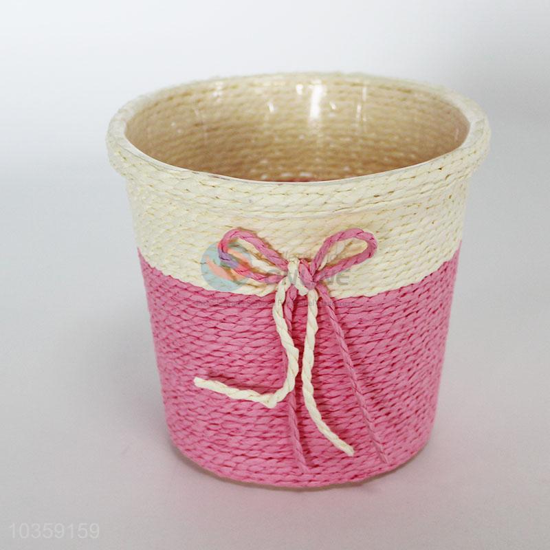 Round Design Bowknot Decorative Weave Storage Basket Flower Tray