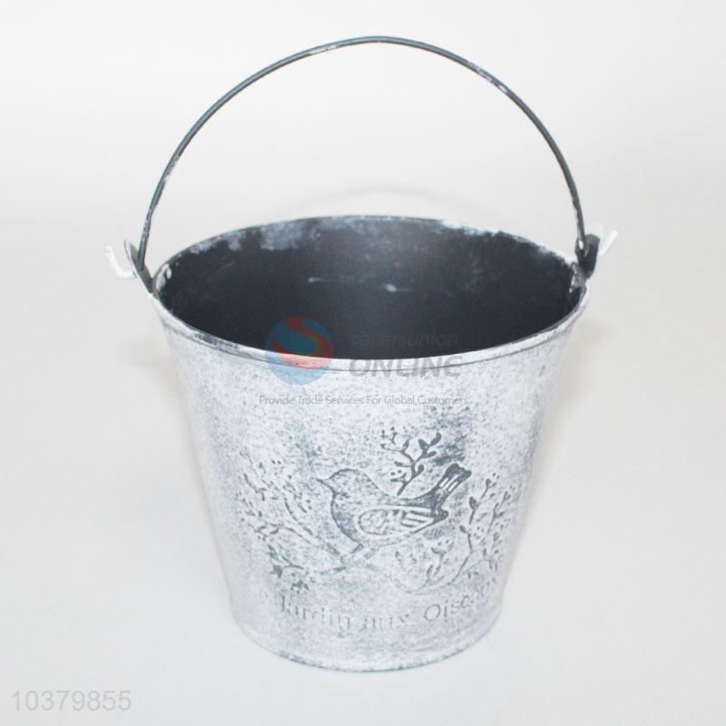 Silver Color Bird Pattern Iron Flowerpot