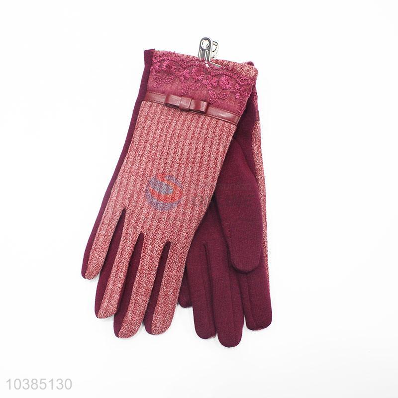 Popular designer lace bowknot gloves women