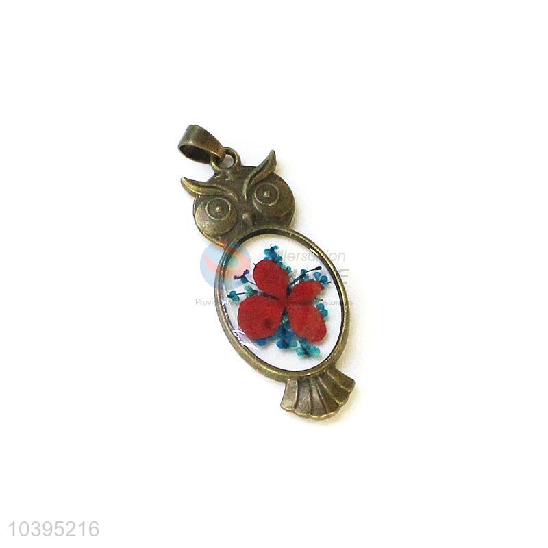 Cute Design Bronze Owl Shape Real Flower Pendant With Chain