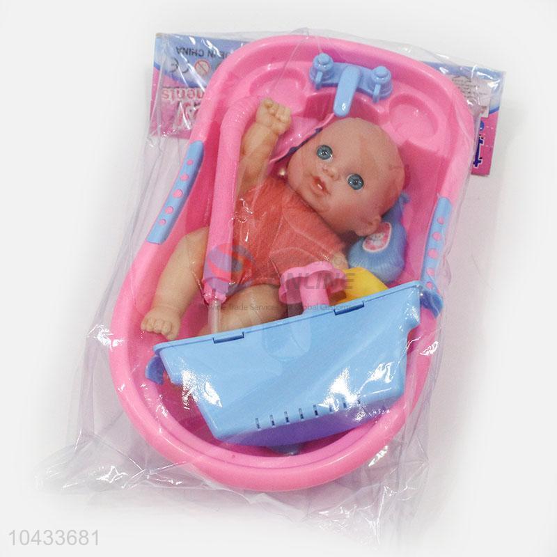 Low Price 8-inch Bath Baby Doll with Duck Bathing Bottles