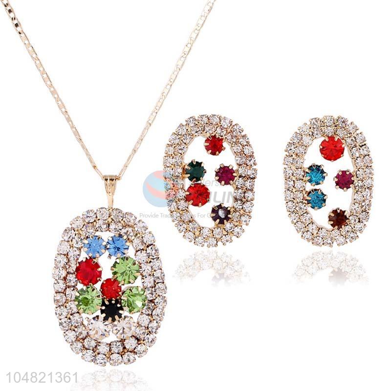 Customized wholesale colorful rhinestone necklace&earrings set