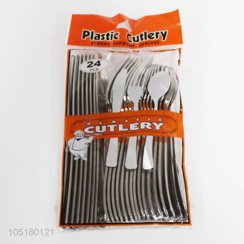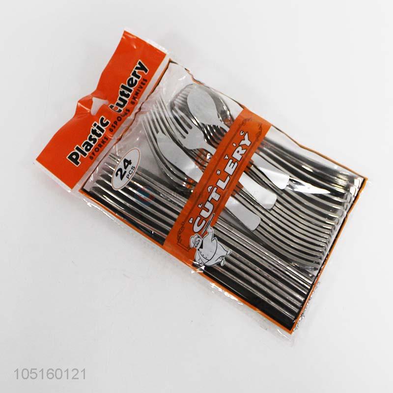 Promotional 24pcs plated plastic cutlery fork spoon knife