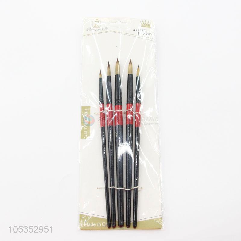 Low Price 5pcs Round Sharp Wood Handle Nylon Artist Painting Brushes