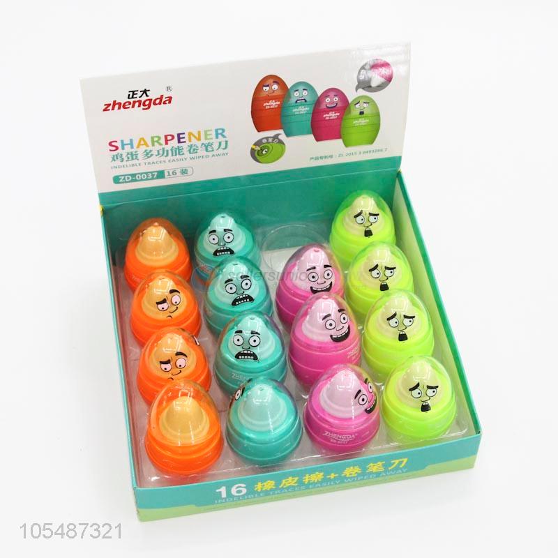 Fancy design egg shape colorful sharpener+eraser