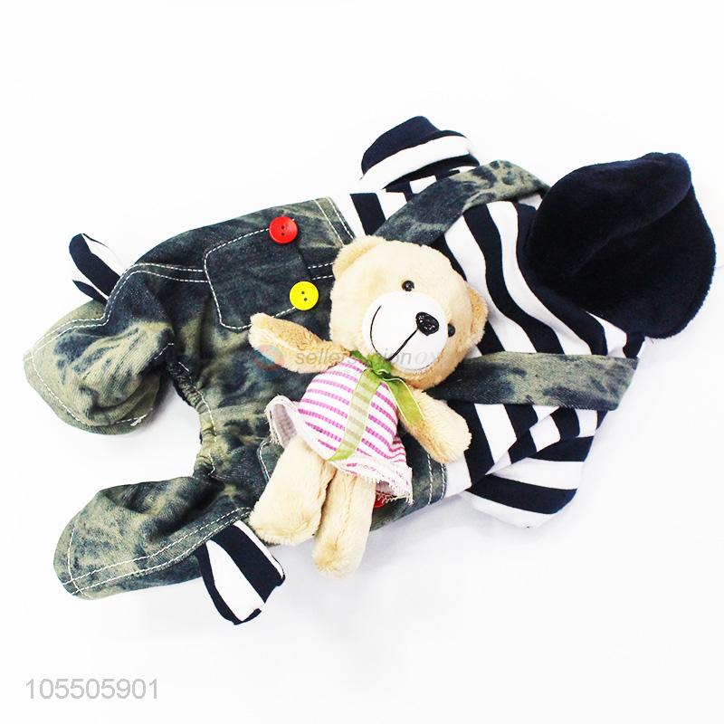 Competitive Price Pet Apparel Siamese Striped Clothes Jeans with Cartoon Bear