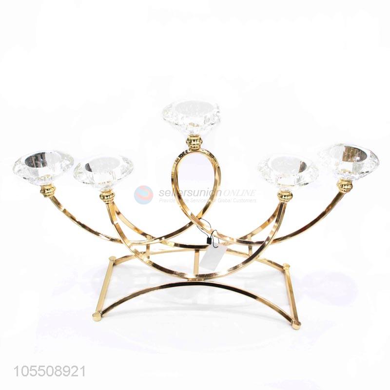 Promotional 5 heads golden iron candlestick crystal candle holder