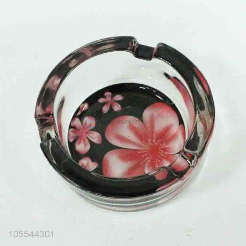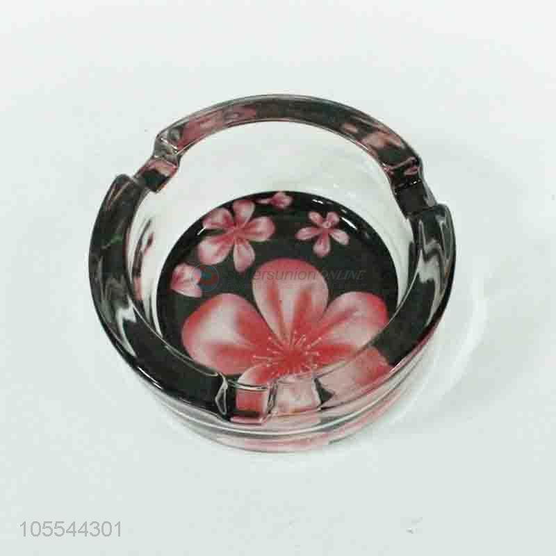 Excellent quality beautiful flower printed glass ashtray