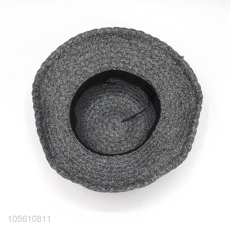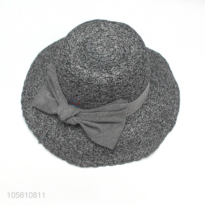 Gray women summer beach straw hat wide brim cap with bowknot