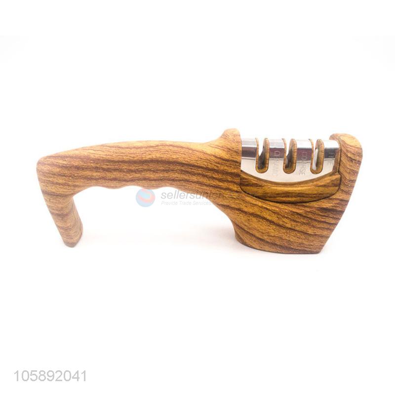 Latest new kitchen knife sharpener wood grain color 3 stage professional knife sharpener