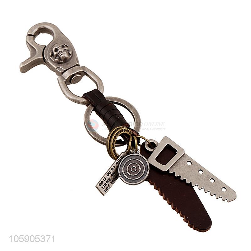 Top quality retro alloy saw pendant weaving leather key chain