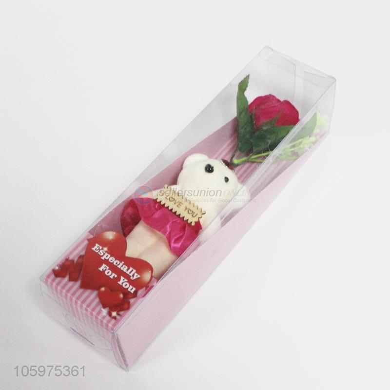 Best Sale Artifical Rose Flower and Bear for Valentine Day Gift