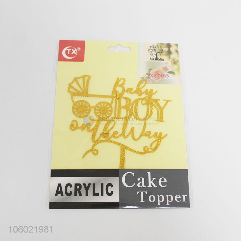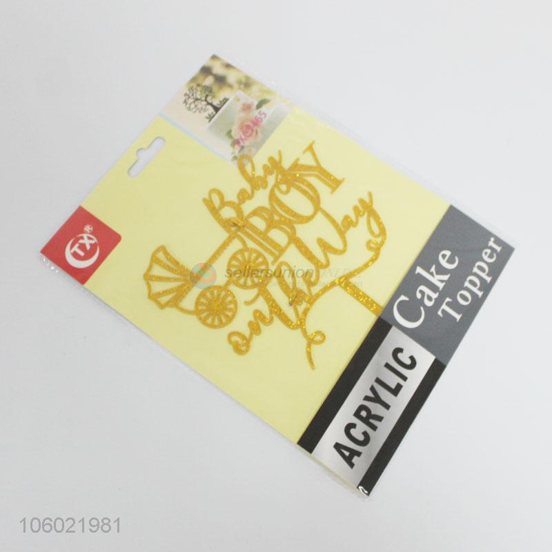 Factory price golden glitter acrylic baby birth cake topper