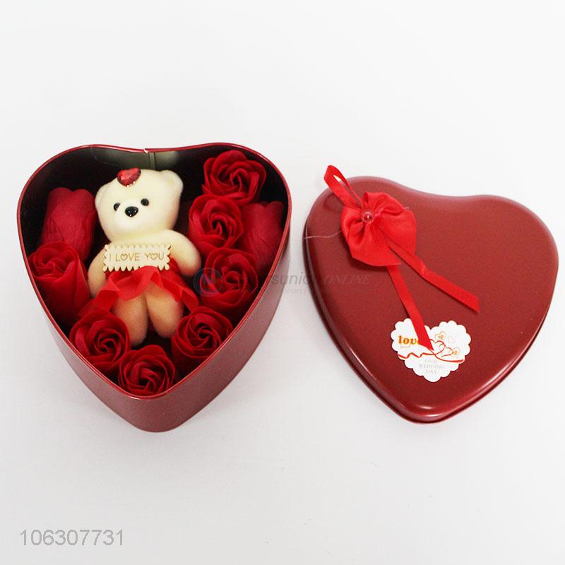 - Material :Soap flower+plush+tinplate
