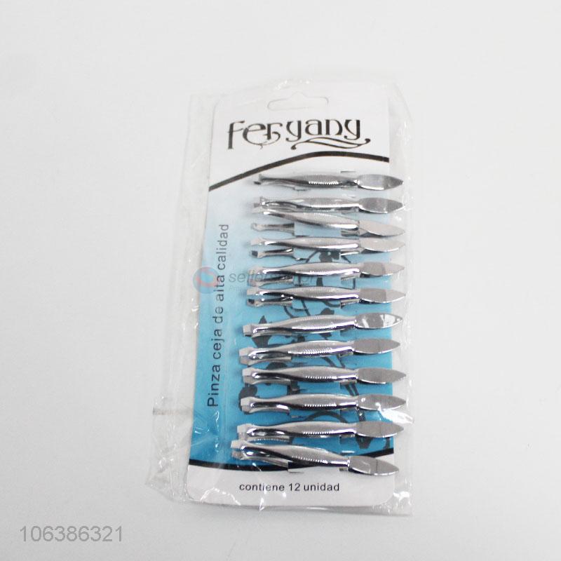 Wholesale premium quality 12pcs stainless iron eyebrow tweezers