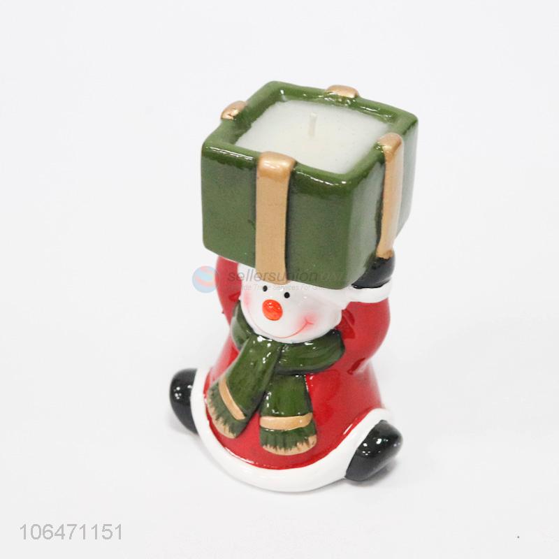 Reasonable price Christmas decoration ceramic candle holder with snowman design