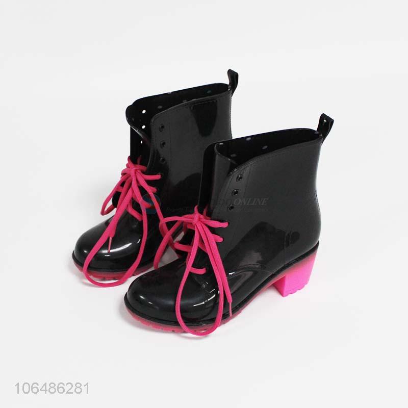 Wholesale PVC Waterproof High-heeled Women Rainshoes