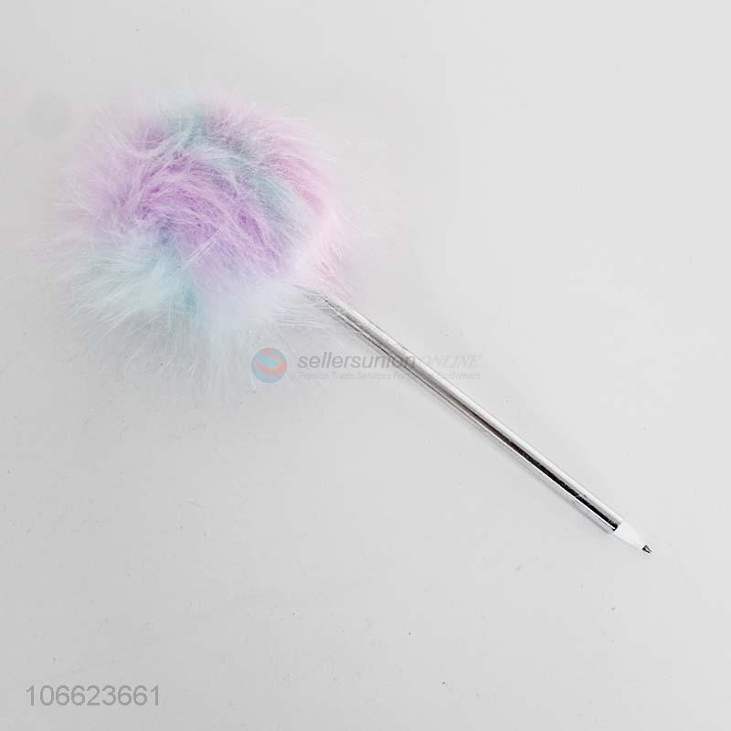 New design kids plastic ball-point pen with colorful pom pom