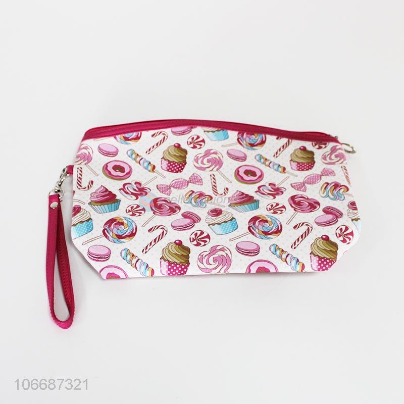 New design desserts printed pu cosmetic makeup bag