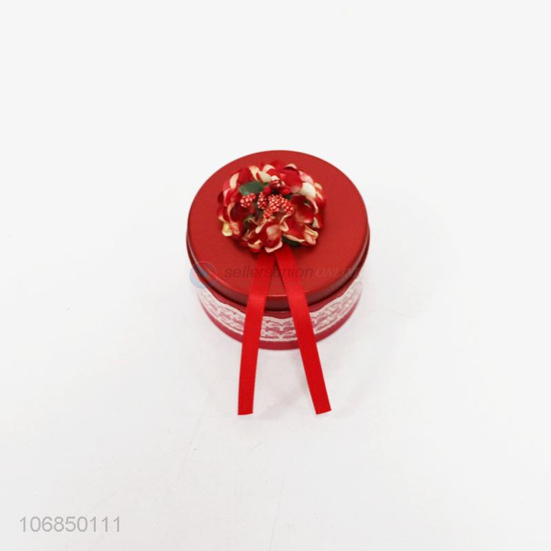 Promotional delicate red round tin candy box gift box with ribbon