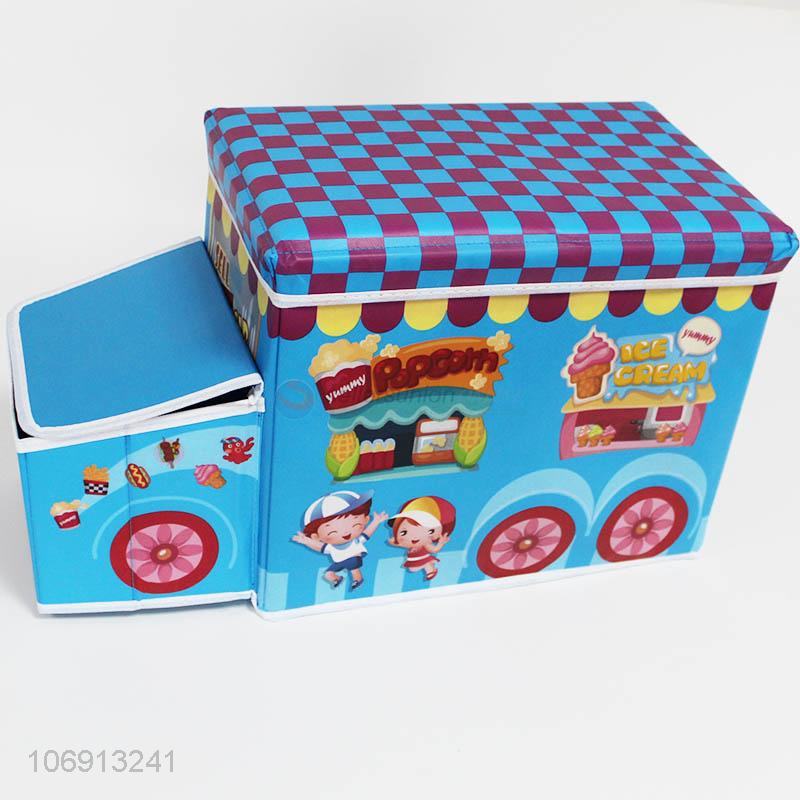 Premium products cartoon bus shaped nonwoven storage stool for kids