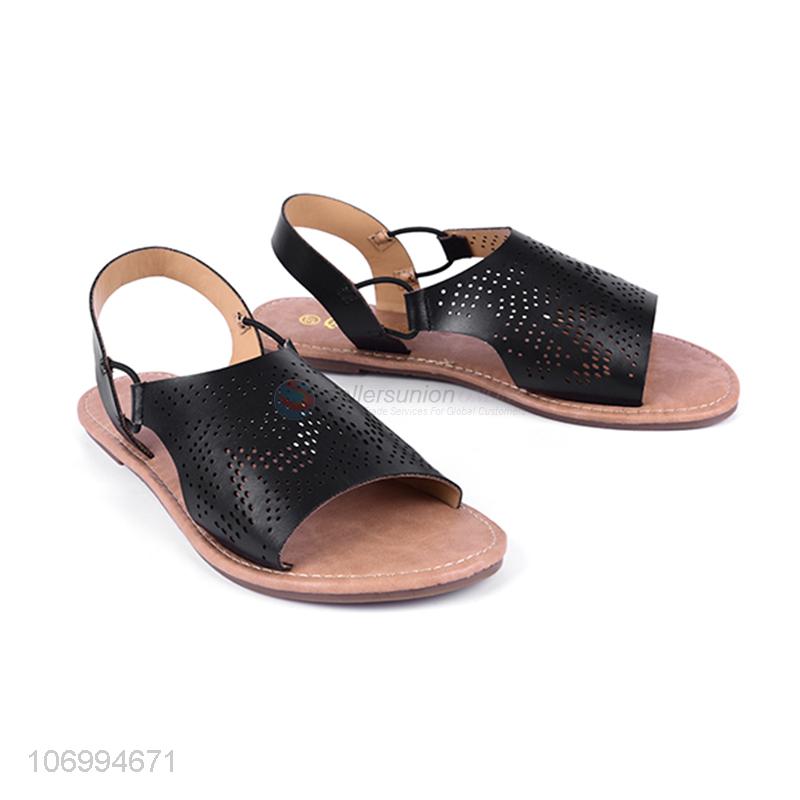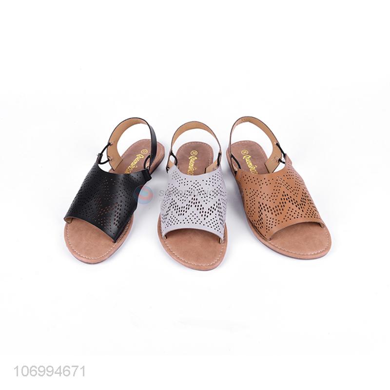 China manufacturer women laser cutting sandal pu leather sandal