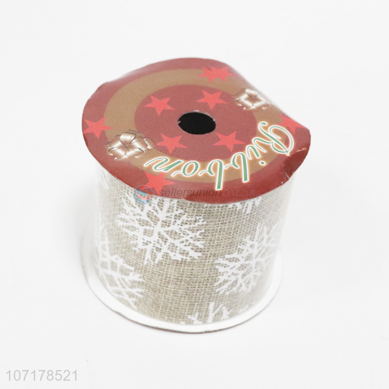 New design 6cm*3yards Christmas burlap ribbow roll with snowflake pattern