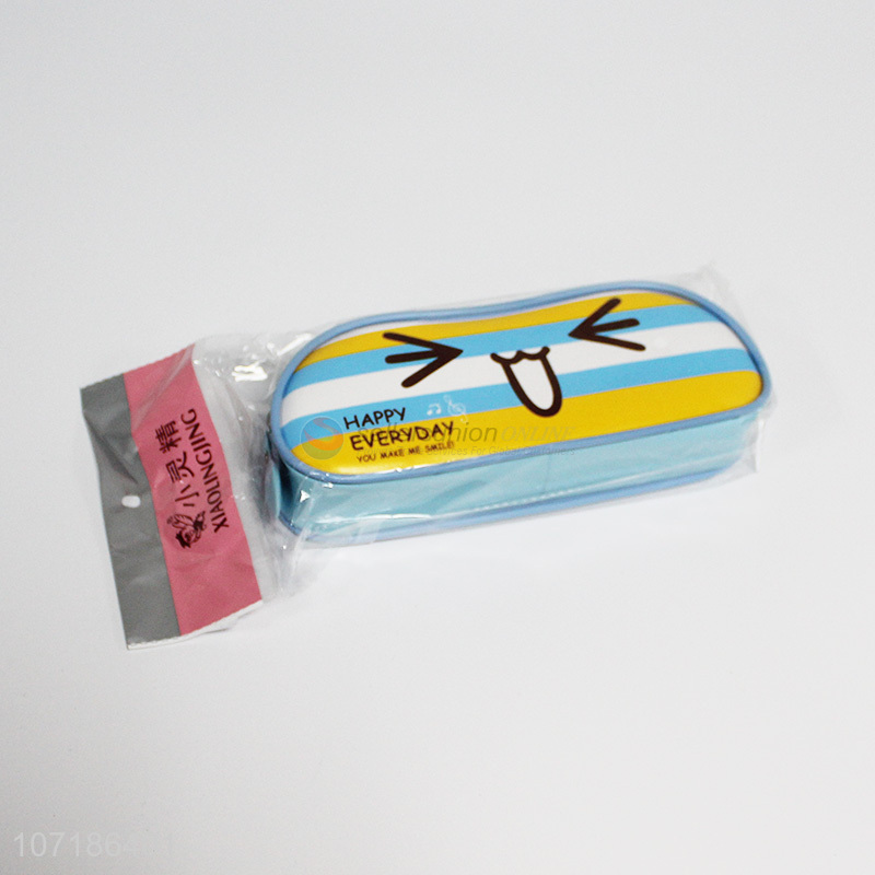 Suitable price cartoon smiling face bag printed pu leather pen bag school supplies