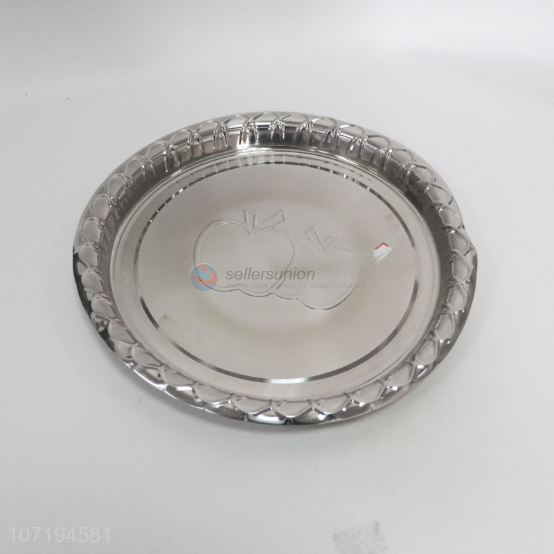 High quality popular round stainless iron food serving tray metal fruit plate