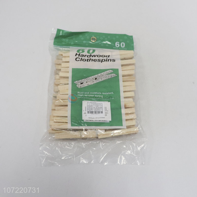 High quality 60pcs hardwood clothespins pinewood clothes pegs