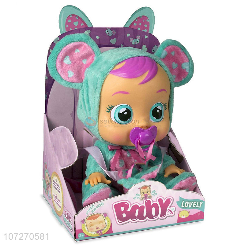 Recent design 14 inch vinyl pacifier baby doll crying baby dolls with found sound