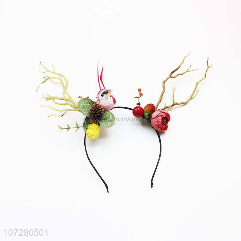 Wholesale Christmas Decoration Fashion Deer Horn Flower Headband Hair Clasp