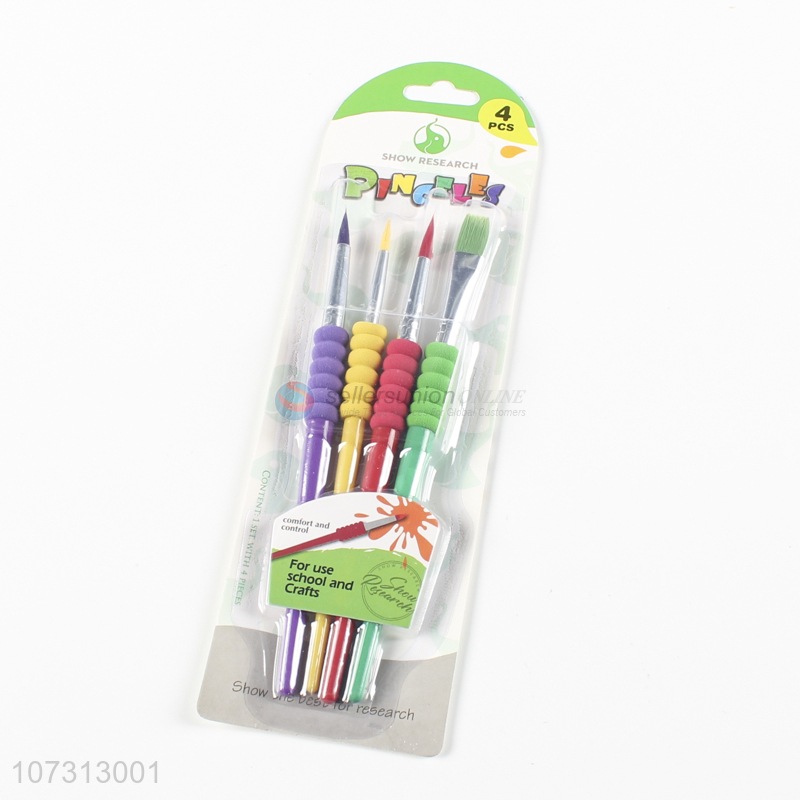 Wholesale cheap art tools 4pcs plastic handle watercolor painting brush oil paintbrush