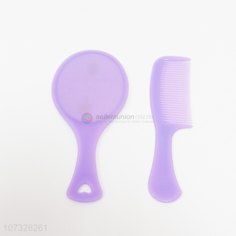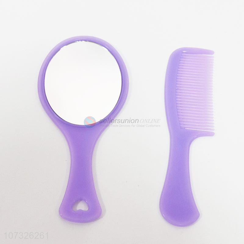 Good quality solid color hand-held plastic mirror and comb set for promotion