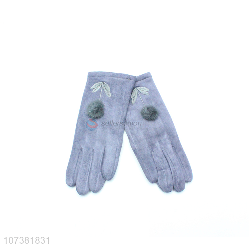 Factory Custom Women Lady Suede Winter Warm Lined Gloves
