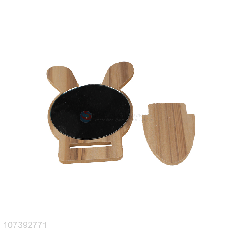 Wholesale Cute Rabbit Ears Design Wooden Single Side Makeup Mirror