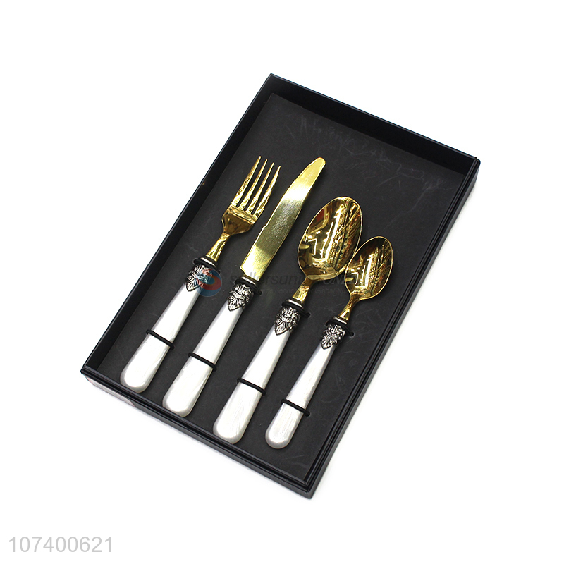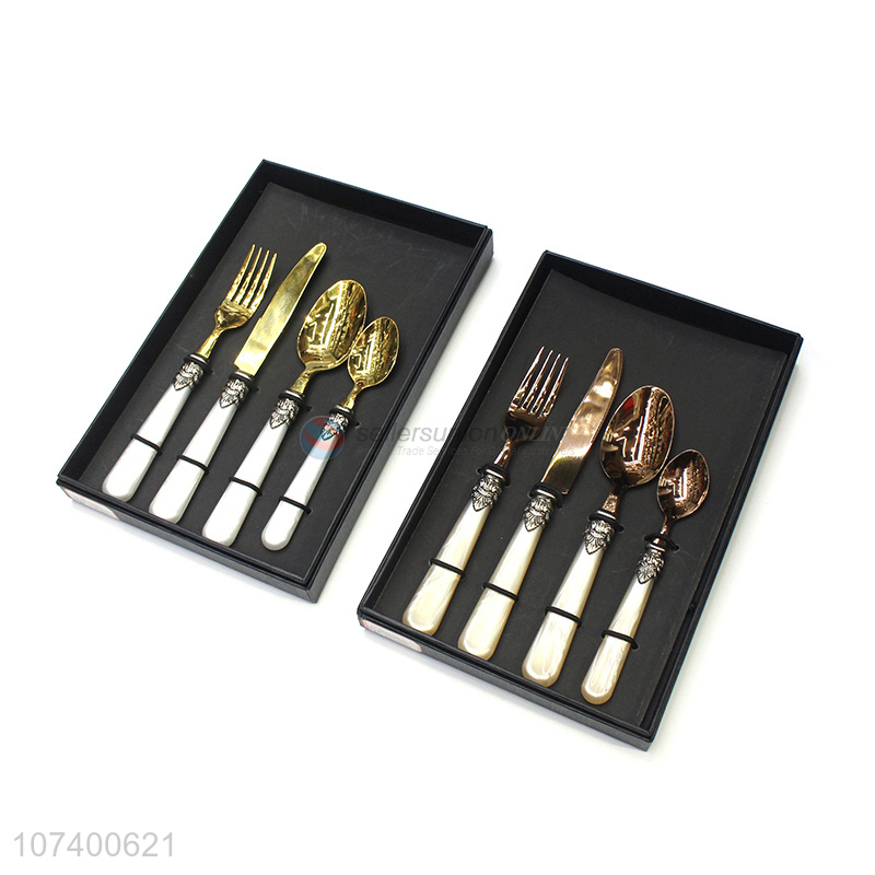 Attractive design deluxe acrylic stainless steel cutlery metal dinnerware set