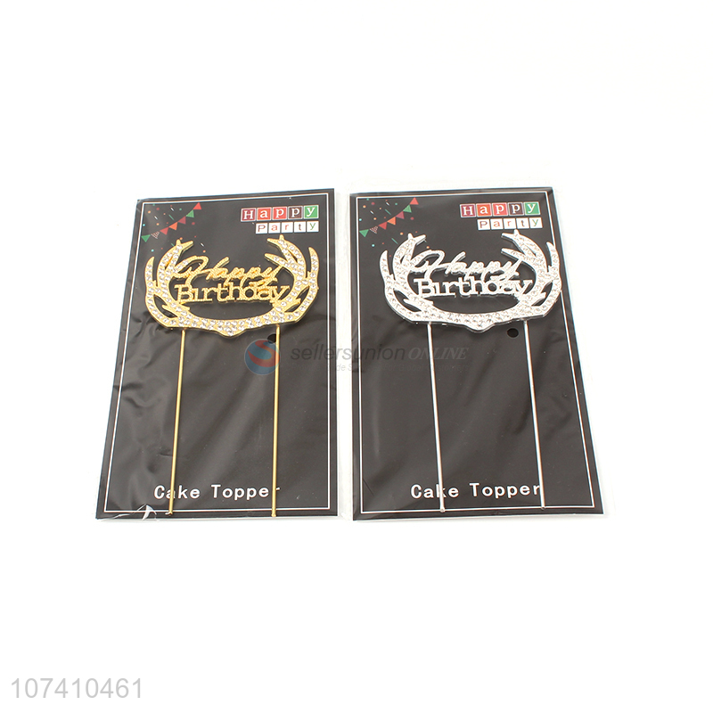 Hot sale happy birthday cake decoration alloy cake topper