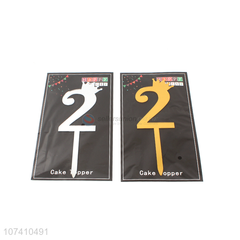 Hot sale decorative metallic acrylic crown number cake toppers