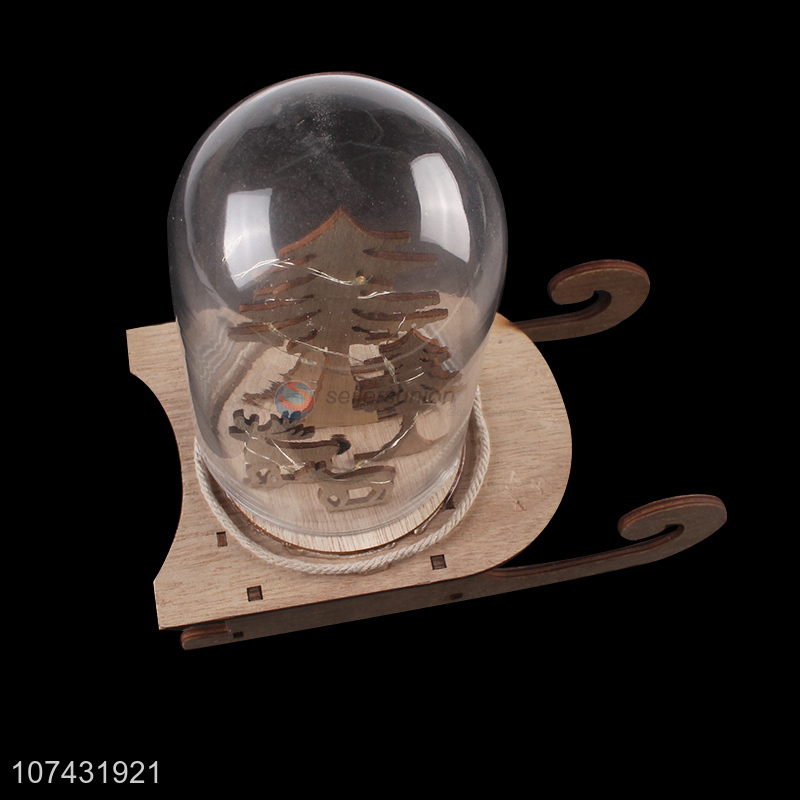 Good sale Christmas decoration wooden sleigh with led light