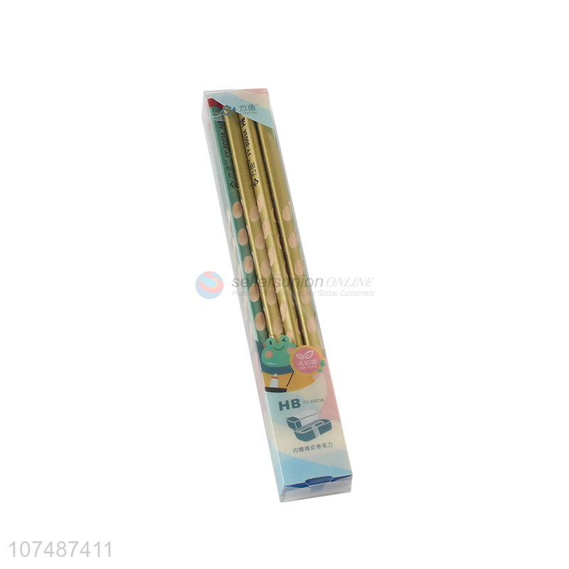 Wholesale Triangle Student Pencil Set With Eraster And Pencil Sharpener